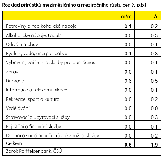 ČSÚ potvrdil, že meziměsíčně se cenová hladina zvýšila o 0,6 % a meziroční růst inflace zrychlil z 1,4 % na 1,9 %. Bylo to dáno především skokovým zvýšením cen pohonných hmot, který byl ve srovnání s únorem takřka pětinový. Očekávala se však ještě mírně vyšší inflace, ale ta byla tlumena poklesem cen potravin a nealkoholických nápojů.