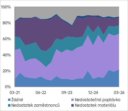 Globální ekonomické prostředí je aktuálně silně ovlivněno geopolitickým napětím, zejména konfliktem na Blízkém východě, který představuje klíčové riziko pro další vývoj. Ekonomika eurozóny loni vzrostla o 1,4 %, nicméně výhled pro letošní rok se zhoršil. V případě rychlého uklidnění konfliktu by růst mohl zpomalit k 1 %, zatímco při vleklém napětí hrozí scénář stagflace s růstem kolem 0,5 %. Hlavním přenosovým kanálem jsou ceny energií, především ropy, jejichž výrazný růst by tlumil ekonomickou aktivitu a zároveň zvyšoval inflaci.